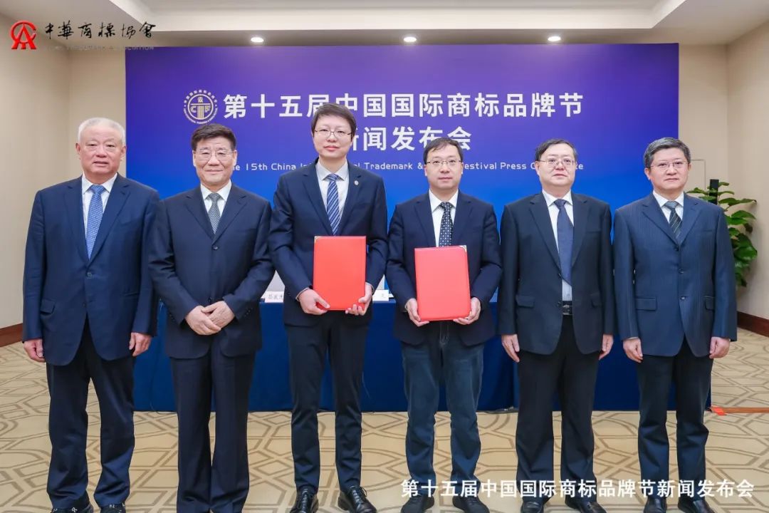 新闻发布会现场举行了汾酒集团作为本届商标品牌节总协办单位的签约仪式。在中华商标协会会长马夫,山西省市场监督管理局党组成员、副局长武小勤,山西省商标品牌标准化建设促进会会长孙跃进,太原市市场监督管理局二级调研员连波的共同见证下,中华商标协会副秘书长、《中华商标》杂志社社长张豫宁和山西杏花村汾酒厂股份有限公司市场部部长闫向兵代表双方签署合作协议。